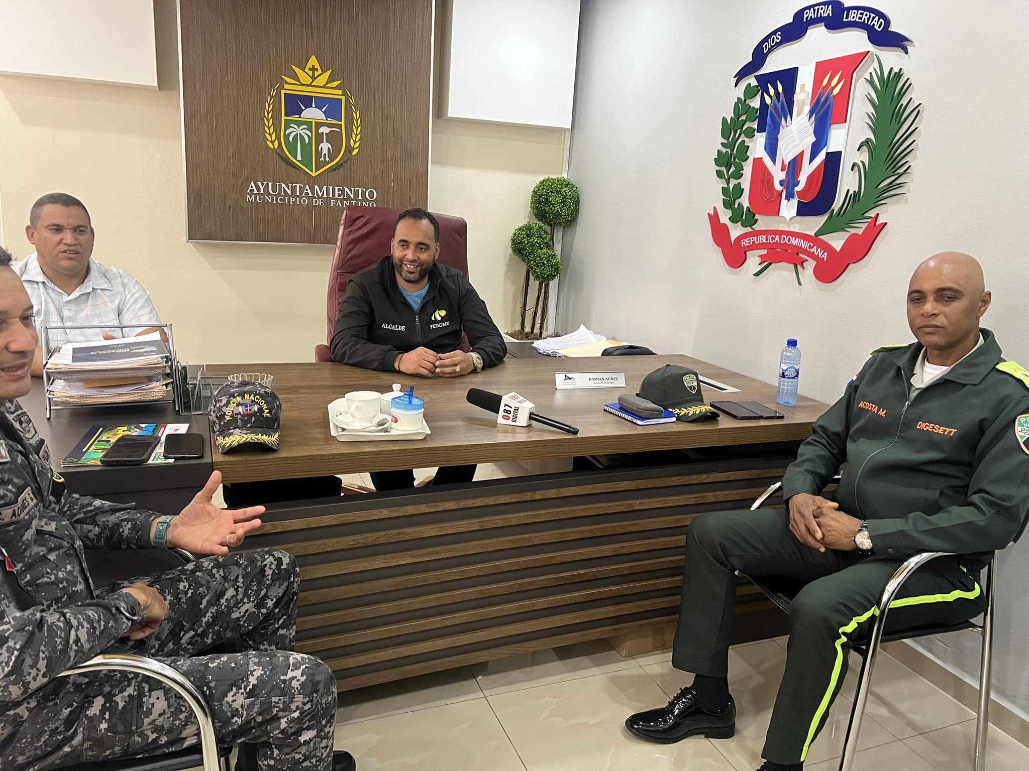 El alcalde Dr. Damián Rafael Núñez Adames encabezó una importante reunión con el nuevo comandante policial en esta provincia, Teniente Coronel Jorge Adames y con el director provincial de la Digesett, Coronel Moronta Merejo para coordinar acciones que mejoren la organización del tránsito en Fantino. El objetivo principal es reducir los accidentes viales en la zona. Entre las medidas acordadas, se destacan la implementación de programas de señalización de vías y campañas de Educación Vial dirigidas a la comunidad. Este encuentro subraya el compromiso de las autoridades locales y nacionales para promover la seguridad y la movilidad eficiente en las vías de Fantino.