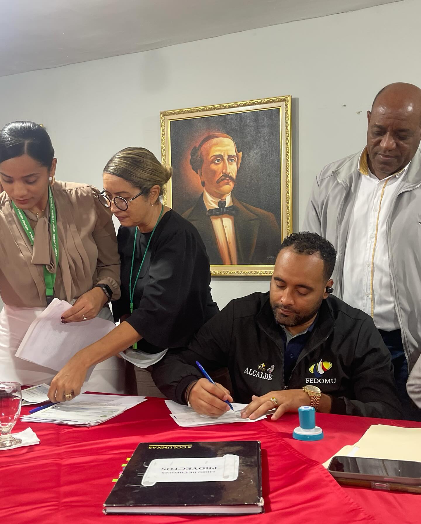 Los fondos fueron entregados al alcalde Damián Núñez por el presidente de FOMISAR, Arquímedes Matías Viloria, en presencia de los representantes de las organizaciones municipales.
