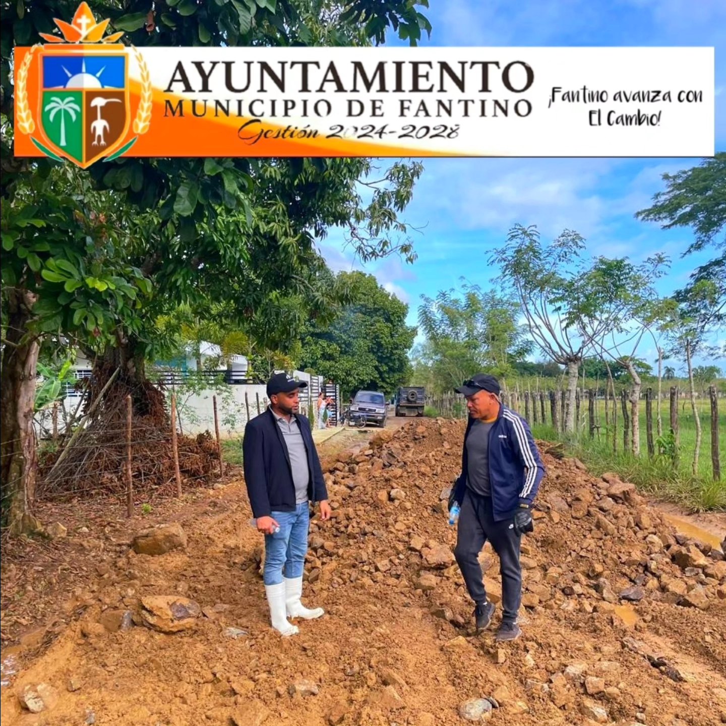 La Alcaldía Municipal de Fantino, bajo la gestión del Dr. Damián Núñez, inició los trabajos de acondicionamiento en el camino vecinal que atraviesa la comunidad de Sierra Prieta, específicamente en el sector de Patria Nueva.