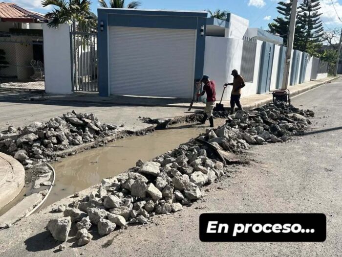 Las imágenes muestran parte de los trabajos en ejecución llevados a cabo en el sector María Trinidad Sánchez (detrás del hospital).