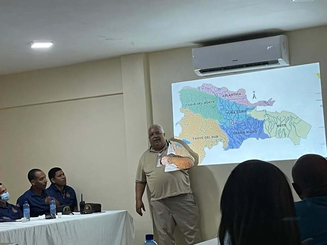El taller fue impartido por el Lic. Anyelo Rivera, Especialista Territorial del Ministerio de Hacienda y Economía, quien abordó temas clave como la identificación de riesgos, la elaboración de planes de respuesta, la adaptación al cambio climático y las mejores prácticas para proteger la vida y los bienes de los ciudadanos.