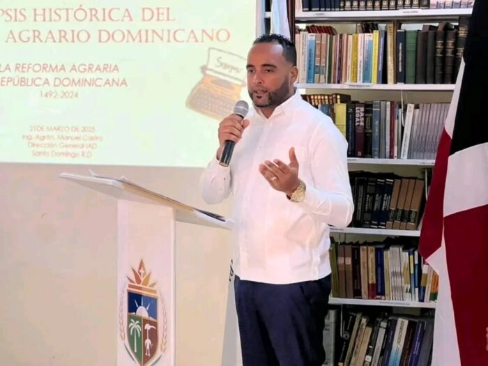 Esta tarde, en el salón de lectura Radhames Aquiles Guzmán de la biblioteca municipal de Fantino, se realizó una importante charla sobre la historia de la reforma agraria en la República Dominicana desde el 1492 al 2024, a cargo de Daniel Cáceres, asistente del director general del IAD. El evento, organizado por invitación del alcalde Damián Núñez y auspiciado con la Fundación Solidaridad Internacional INC (SII), contó con la presencia de Plinio D’Oleo, de la Fundación SII (quien destacó que esto es el principio de las cosas buenas que vendrán para el municipio); tambien estuvo el señor Juan Antonio Saldaña, funcionarios del sector agrario y representantes agropecuarios. La Licda. Yolanda Espino estuvo a cargo como maestra de ceremonia.