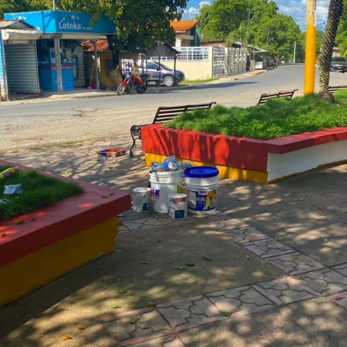 Por instrucciones del alcalde Damián Núñez, colaboradores de mantenimiento bajo la supervisión de la Arq María Esther Cabrera, realizan en estos momentos una jornada de pintado en el parque de Hato Mayor, preparando cada espacio para su próxima decoración navideña.