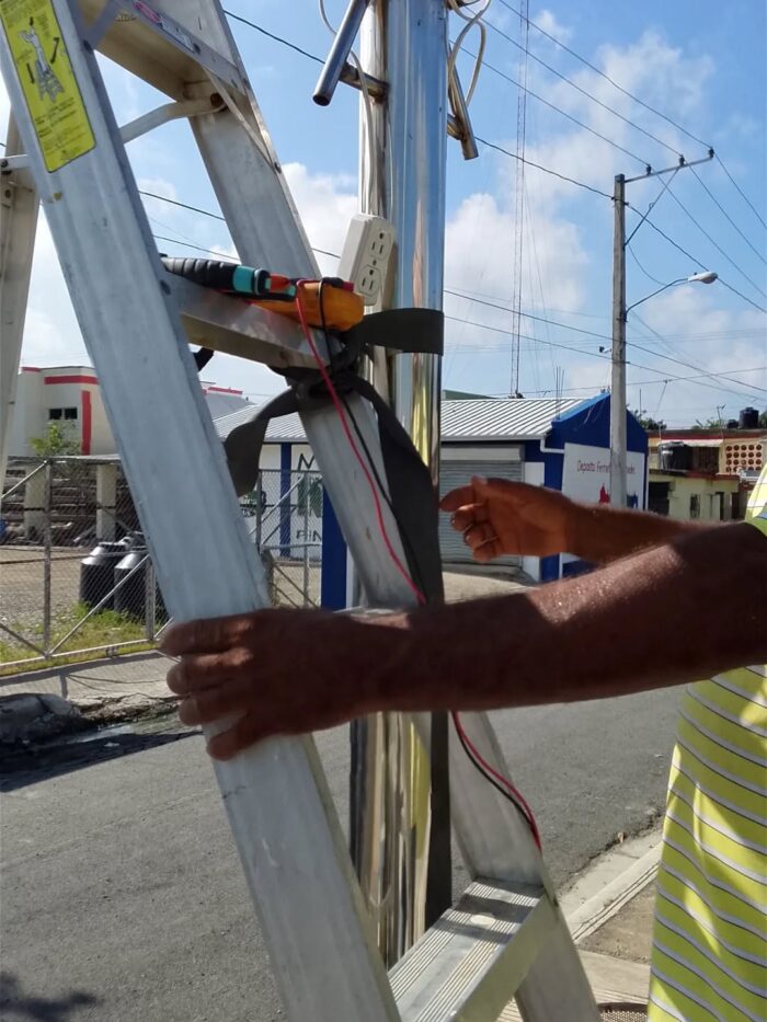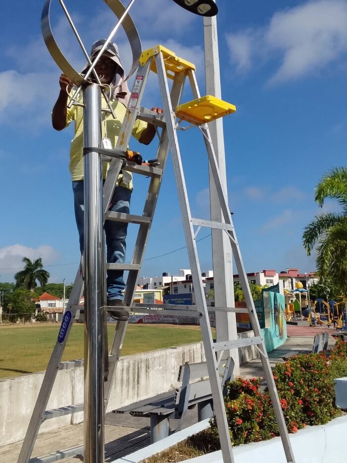 Brigadas de la alcaldía atienden y resuelven la avería reportada en varios postes del referido parque desde temprano. Todas están resueltas.